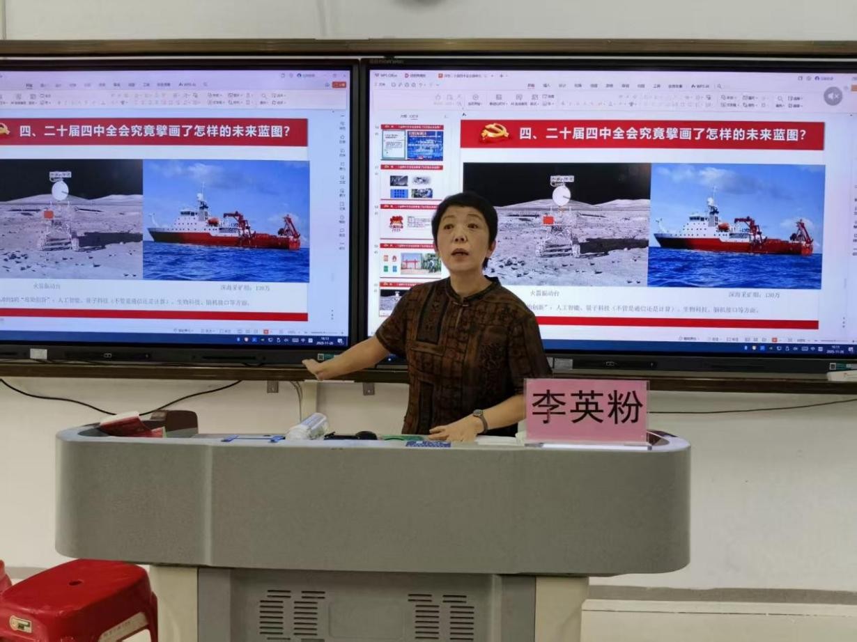 李英粉教授以习近平新时代中国特色社会主义思想为指引,紧扣党的二十届四中全会核心要义与“十五五”规划战略意义,助力党员师生领会全会历史地位与实践要求,将学习热情转化为团队建设、科研创新和人才培养动力,为公司高质量发展筑牢思想根基。