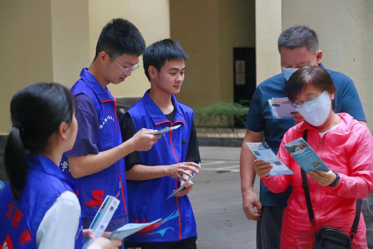 志愿者为老师介绍活动