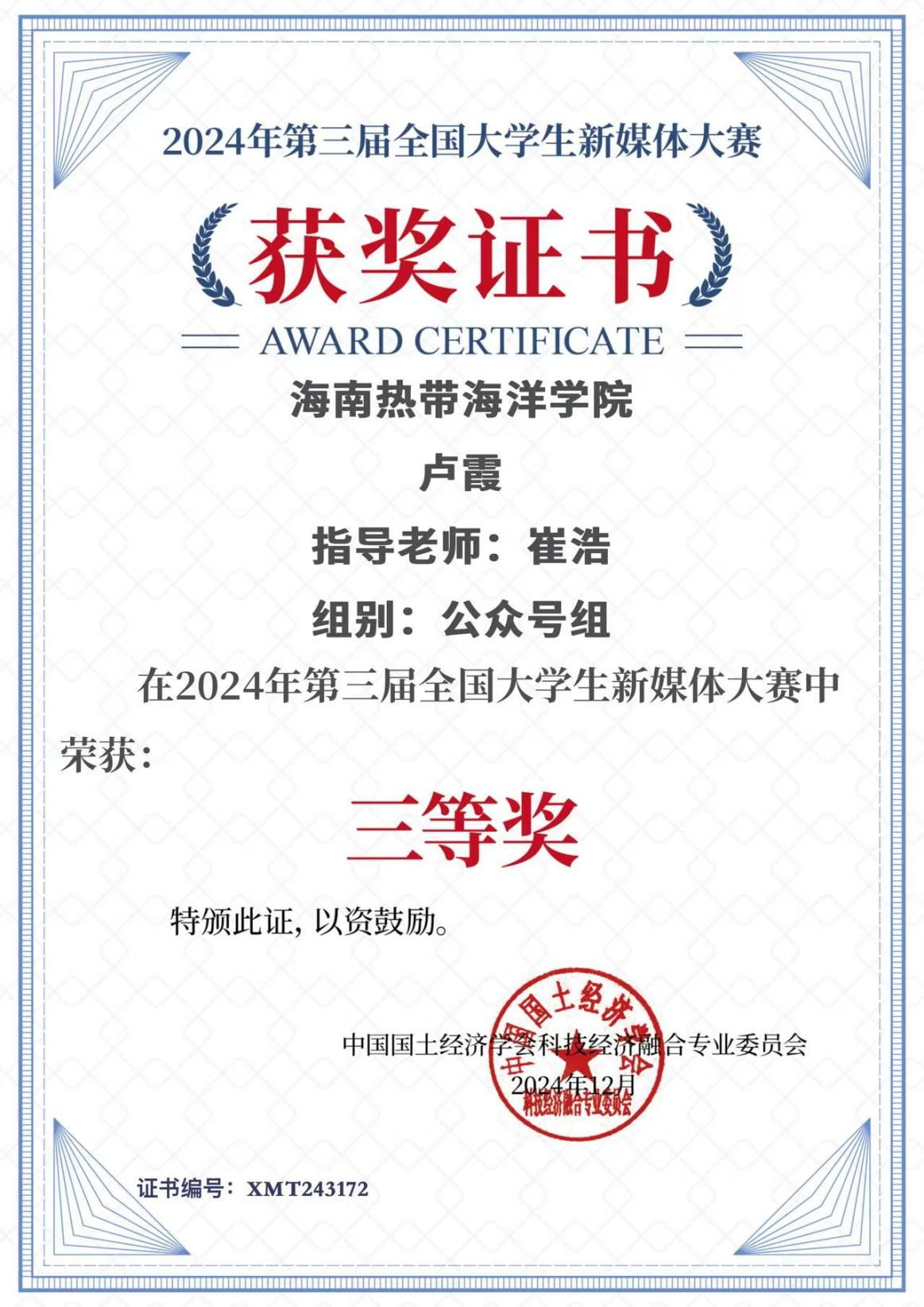 此次获奖不仅是对卢霞同学个人能力的肯定,也是英国上市公司官网365团属新媒体育人成果重要体现。在公司党委的正确领导下,公司团委将继续秉承“三全育人”理念,鼓励和支持员工们积极参与各类学术竞赛和实践活动,不断提升自身的综合素质和创新能力,为公司员工培养工作尽一份力量。
