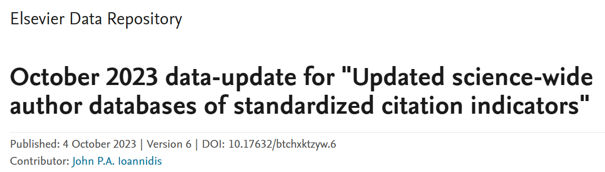 该榜单基于Scopus数据库,该数据库创建了一个超过10万名顶尖科学家的公开数据库,提供关于论文引用、H指数、共同作者调整后的Hm指数、不同作者排名的论文引文和一个综合指标(C-score)的标准化信息,分别显示了学者整个职业生涯(1960-2022)和单年(2022)论文影响力的数据,并给出了论文自引和他引的相关指标。所有科学家被划分为22个科学领域和174个子领域。数据还提供了所有发表过至少5篇论文的科学家在特定的领域和子领域的百分比。