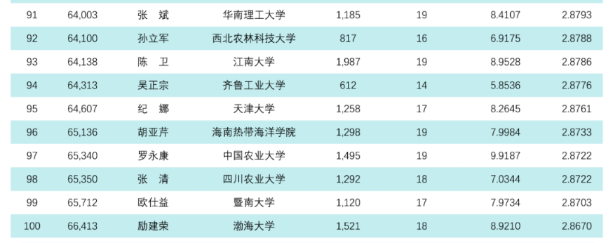 本次排名针对原始数据、以学者2022年C-score值为依据,C-score反映学者论文引用、H指数、共同作者调整后的Hm指数、不同作者排名修正的论文引文等参数的综合指标;所有指标的计算均不考虑论文自引情况;原始数据的子领域1,食品科学相关的学者均纳入统计。