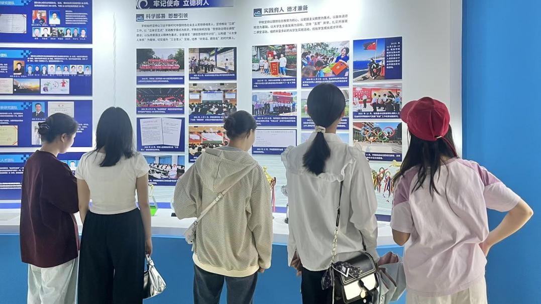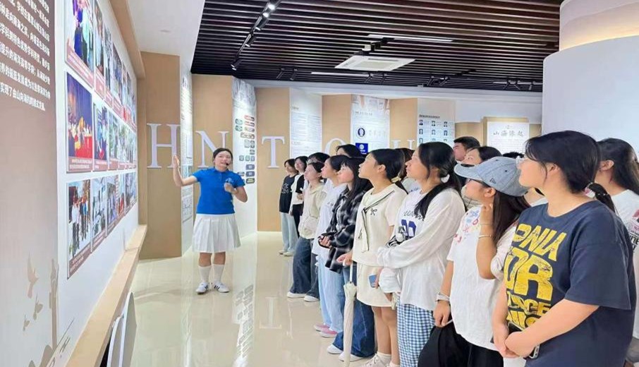 在随后的参观中,玻璃展柜里泛黄的教学手稿、早期的团队建设档案,展区墙上串联公司岁月脉络的老照片,都让新生们真切触摸到历史的温度。在“实践育人”板块,新生们凝视着公司组织的学科竞赛、社会服务活动照片,聆听讲解员讲述前辈师生扎根海岛的奋斗故事,不时发出阵阵感叹。