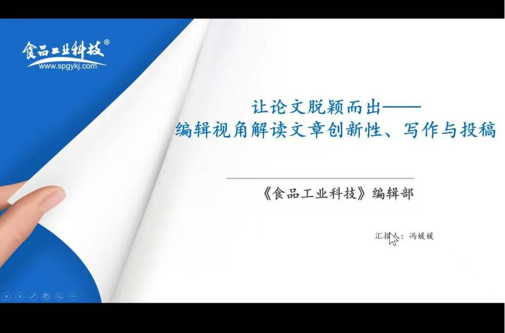 12月16日,应公司硕士点邀请,《食品工业科技》杂志(EI、北大中文核心)冯媛媛主编为师生进行了题为《让论文脱颖而出——编辑视角解读文章创新性、写作与投稿》的线上讲座,讲座以如何提升论文的创新性和投稿技巧为核心,强调了创新性的重要性,并从编辑视角出发,讲解了优秀论文的结构、逻辑和表述要点,同时提供了实用的投稿建议。
